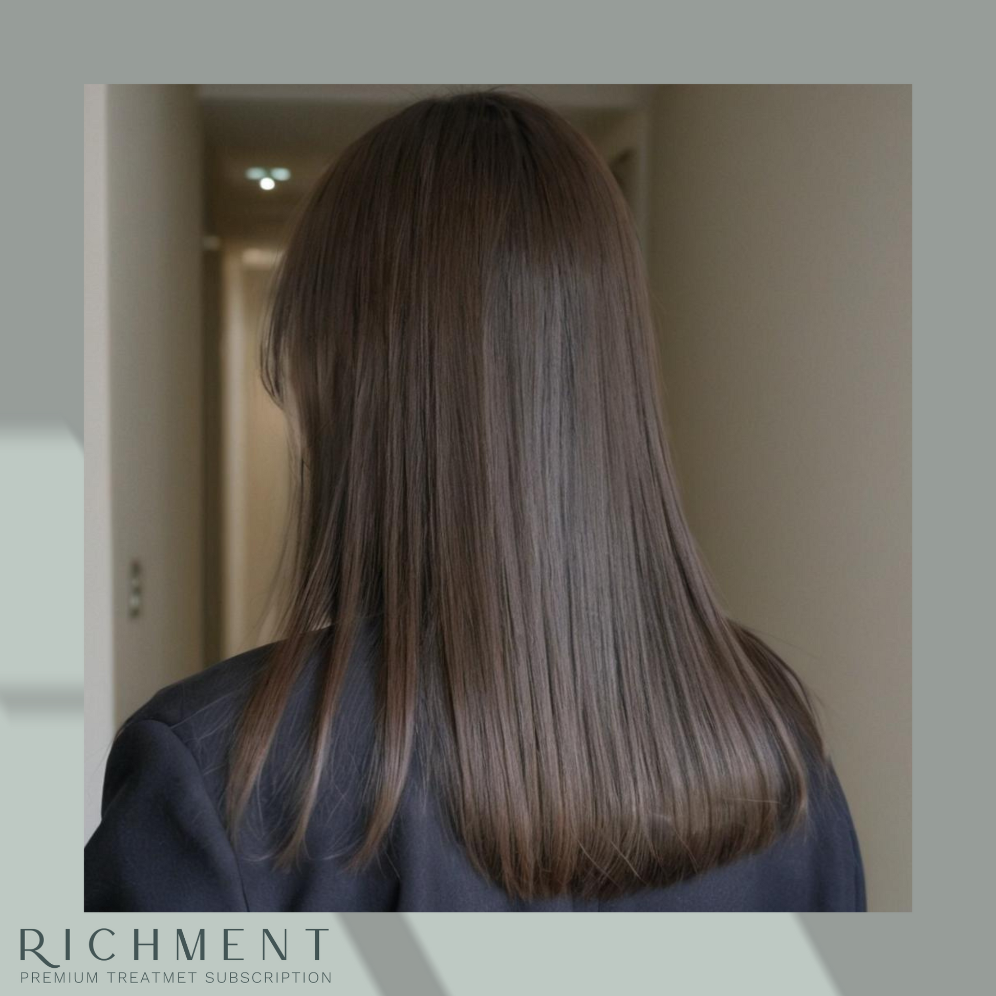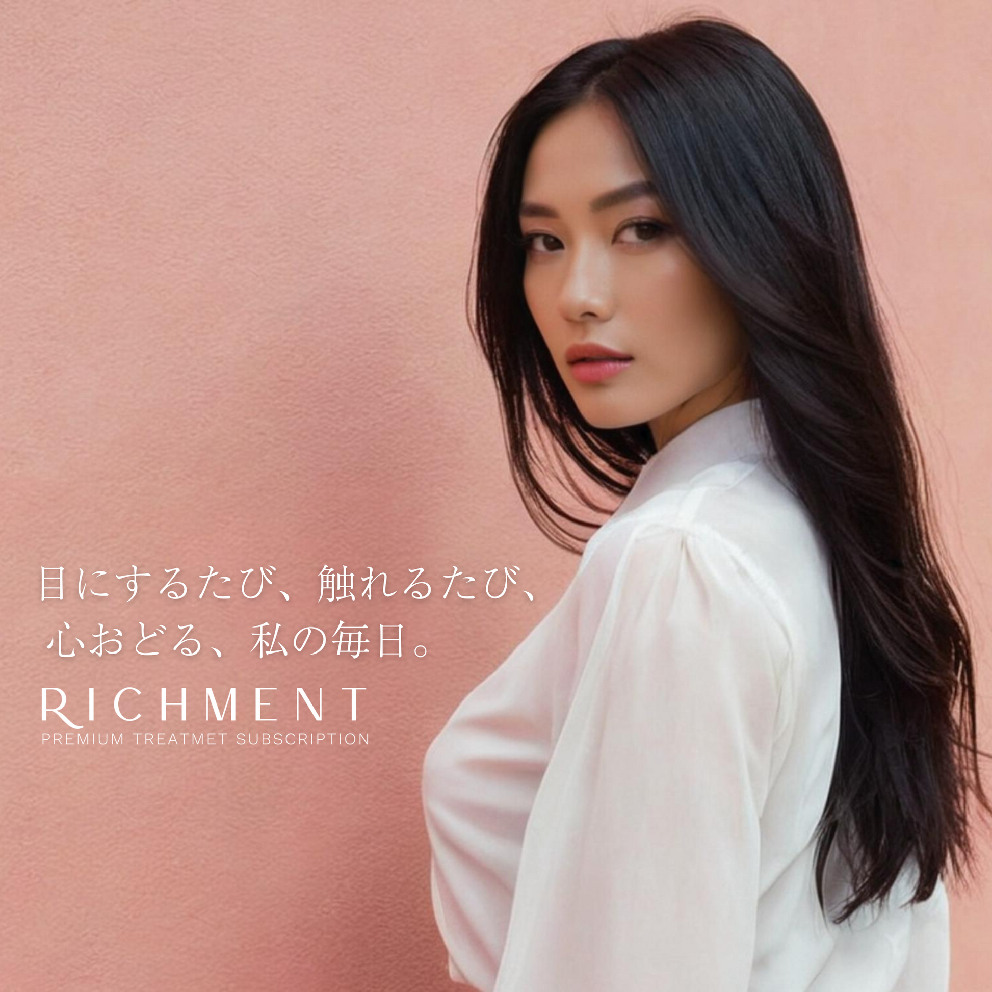 「リッチメントは、毎月定額でプレミアムトリートメントを最大月4回まで受けられるサブスクリプションサービスです。季節やライフスタイルに合わせた最高級のケアを提供し、髪の美しさを引き出します。定期的なプロフェッショナルケアで、髪の健康と輝きを長期間にわたり維持します。」